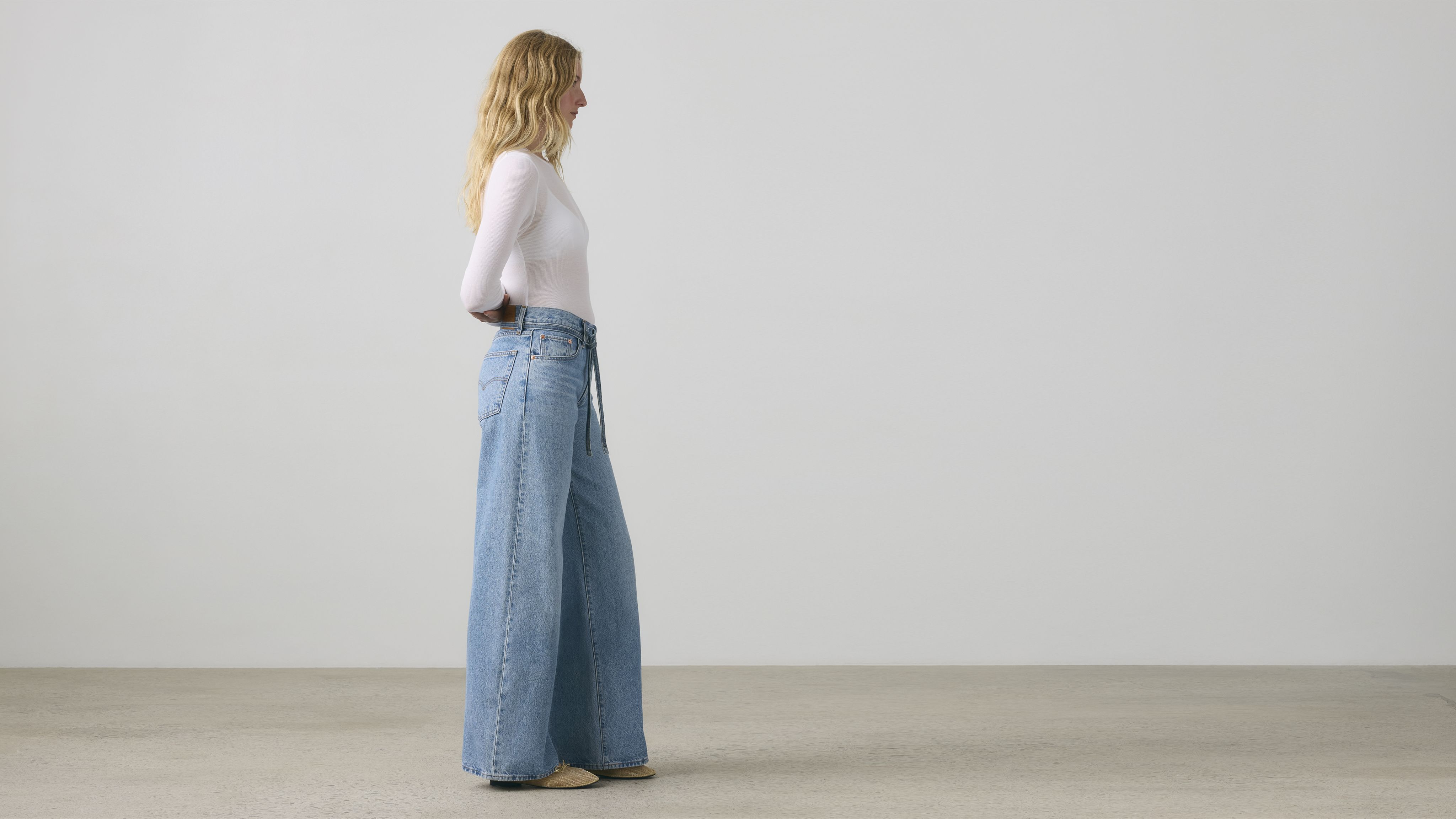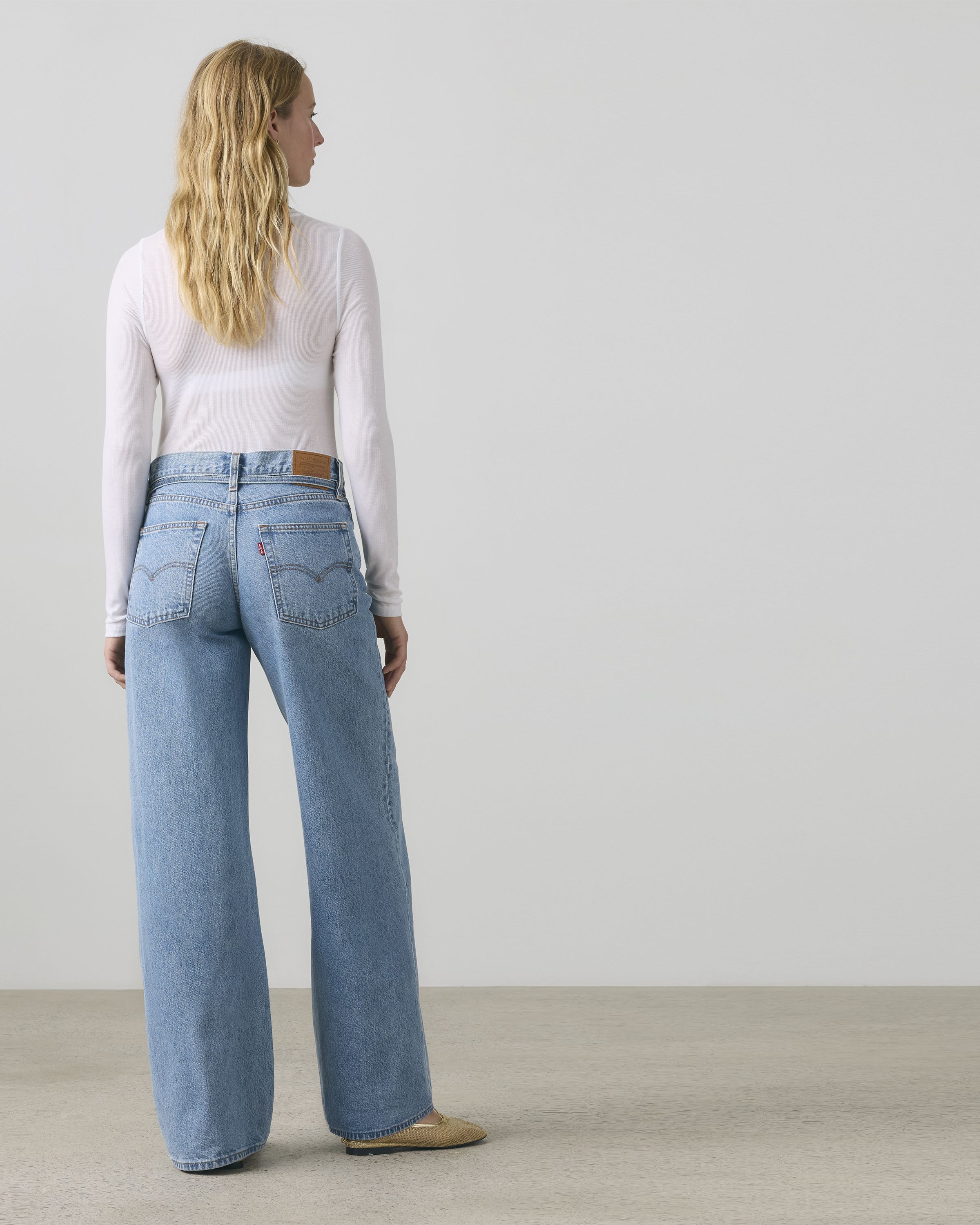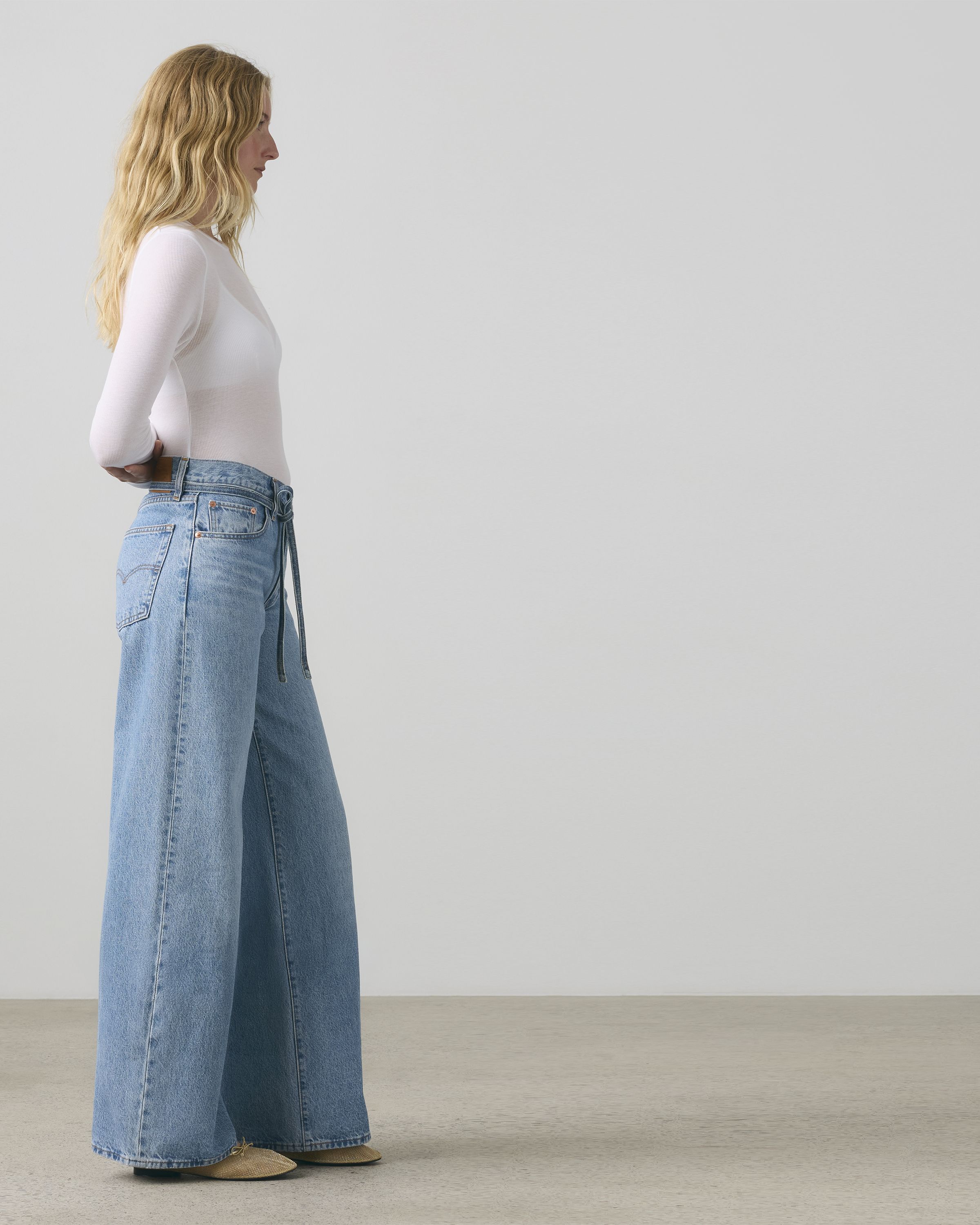 • Wide, straight leg
